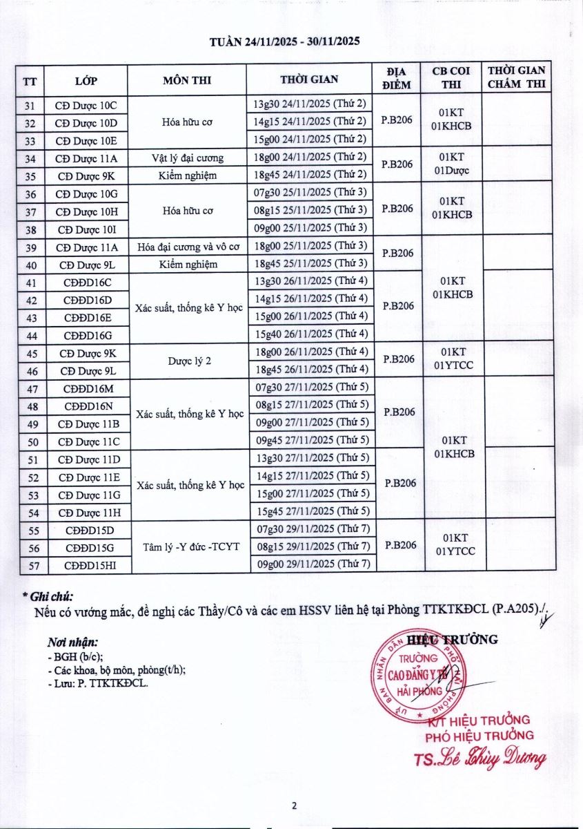 Lịch Thi Kết Thúc Học Kỳ 1 Năm Học 2025-2026 (Từ 10/11/2025 - 30/11/2025)