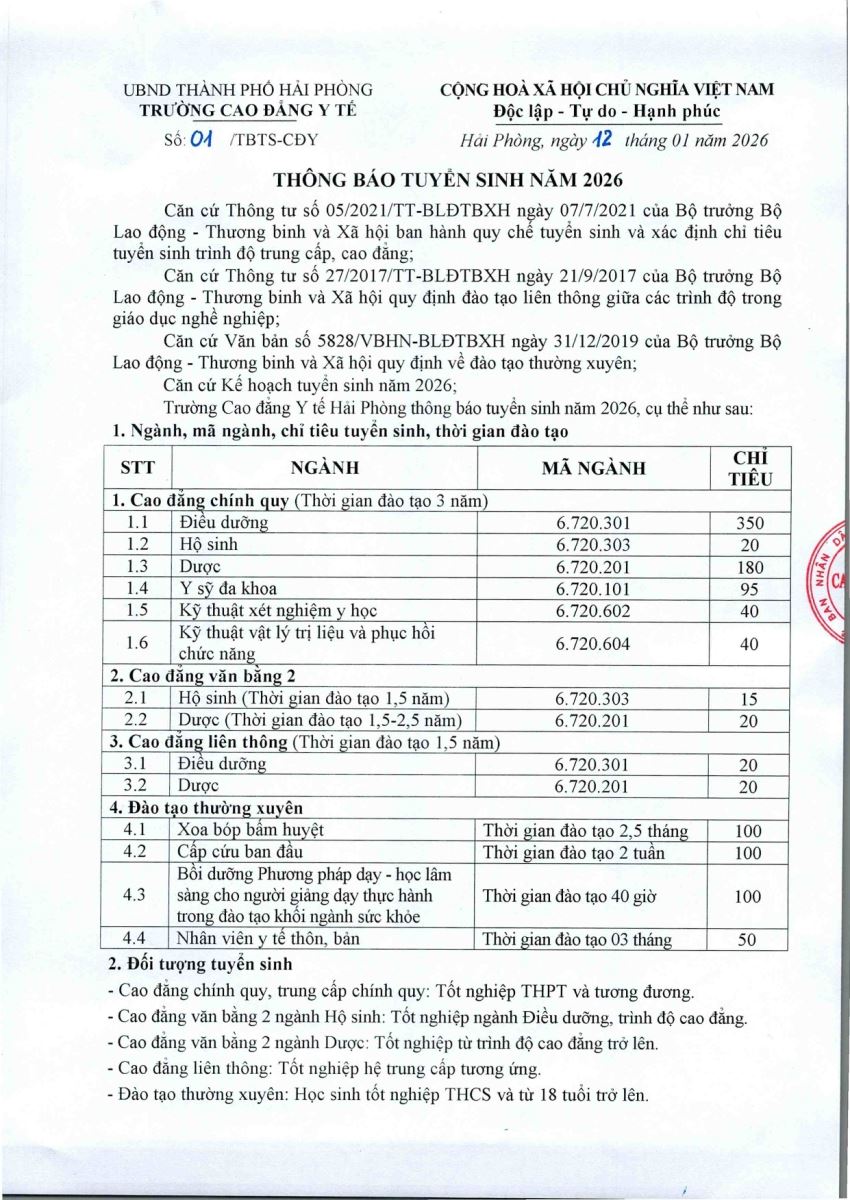 THÔNG BÁO TUYỂN SINH NĂM 2026
