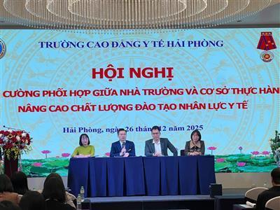 Chiều ngày 26/12/2025, Trường Cao đẳng Y tế Hải Phòng đã tổ chức Hội nghị “Tăng cường phối hợp giữa nhà trường và cơ sở thực hành nâng cao chất lượng đào tạo nhân lực y tế” với sự tham dự của Ban Giám hiệu Nhà trường cùng đại diện các bệnh viện, trung tâm y tế và cơ sở thực hành liên kết.