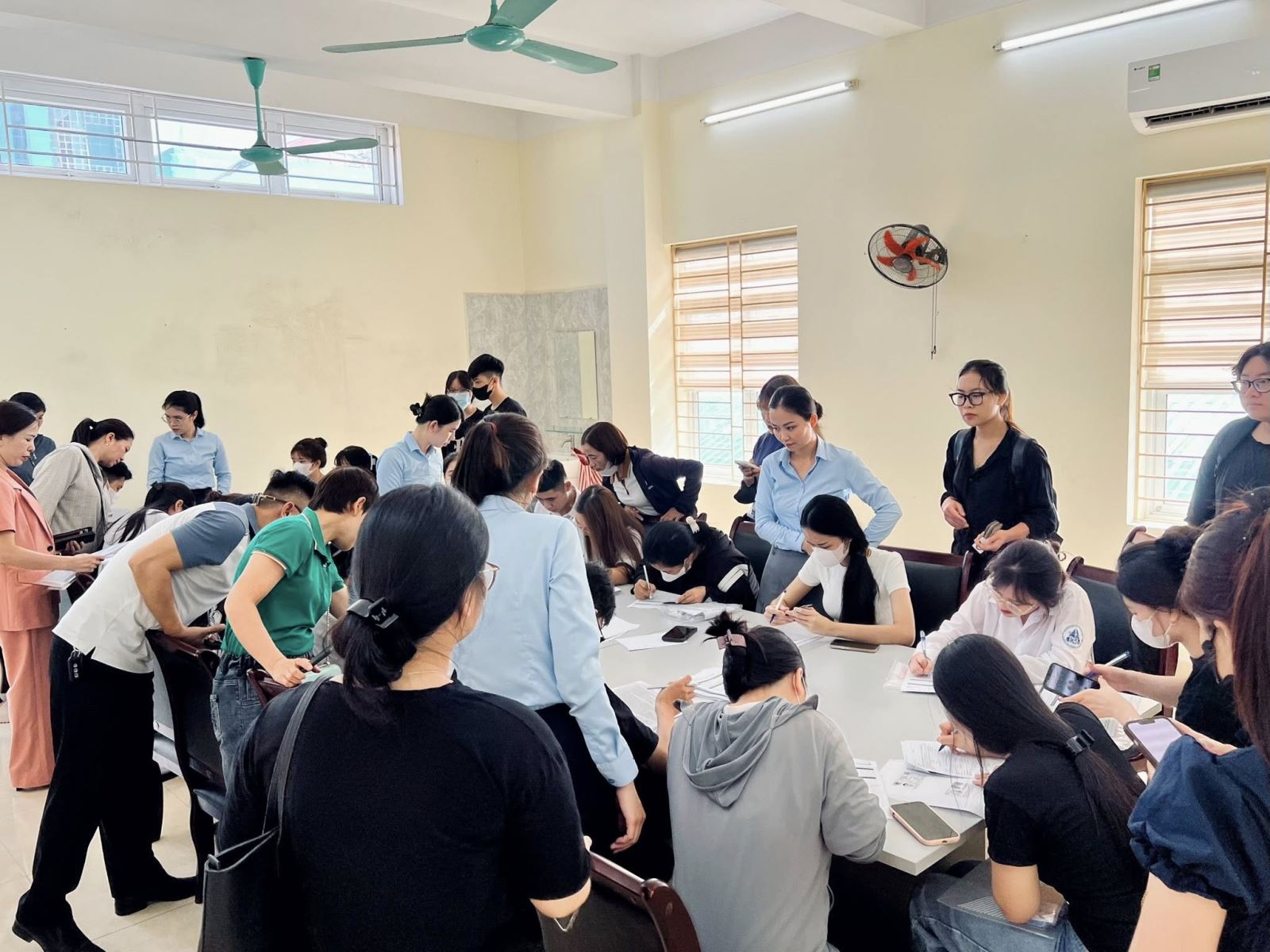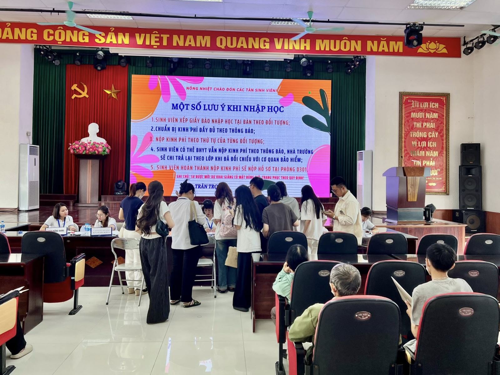 Ngay từ sáng sớm, hàng trăm tân sinh viên cùng phụ huynh đã có mặt đông đủ tại khuôn viên trường để làm thủ tục nhập học. Nhà trường bố trí các khu vực tiếp đón khoa học, đội ngũ cán bộ, giảng viên và sinh viên tình nguyện hỗ trợ tận tình từ khâu hướng dẫn hồ sơ nhập học, tư vấn chuyên ngành và làm thẻ sinh viên