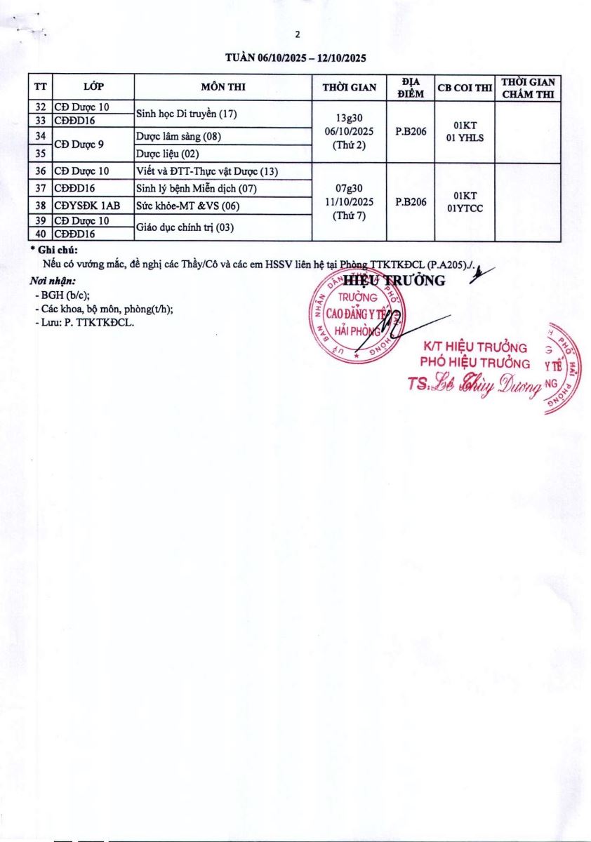 Lịch thi kết thúc học kỳ 1 năm học 2025-2026 (Từ 13/10/2025 - 02/11/2025)