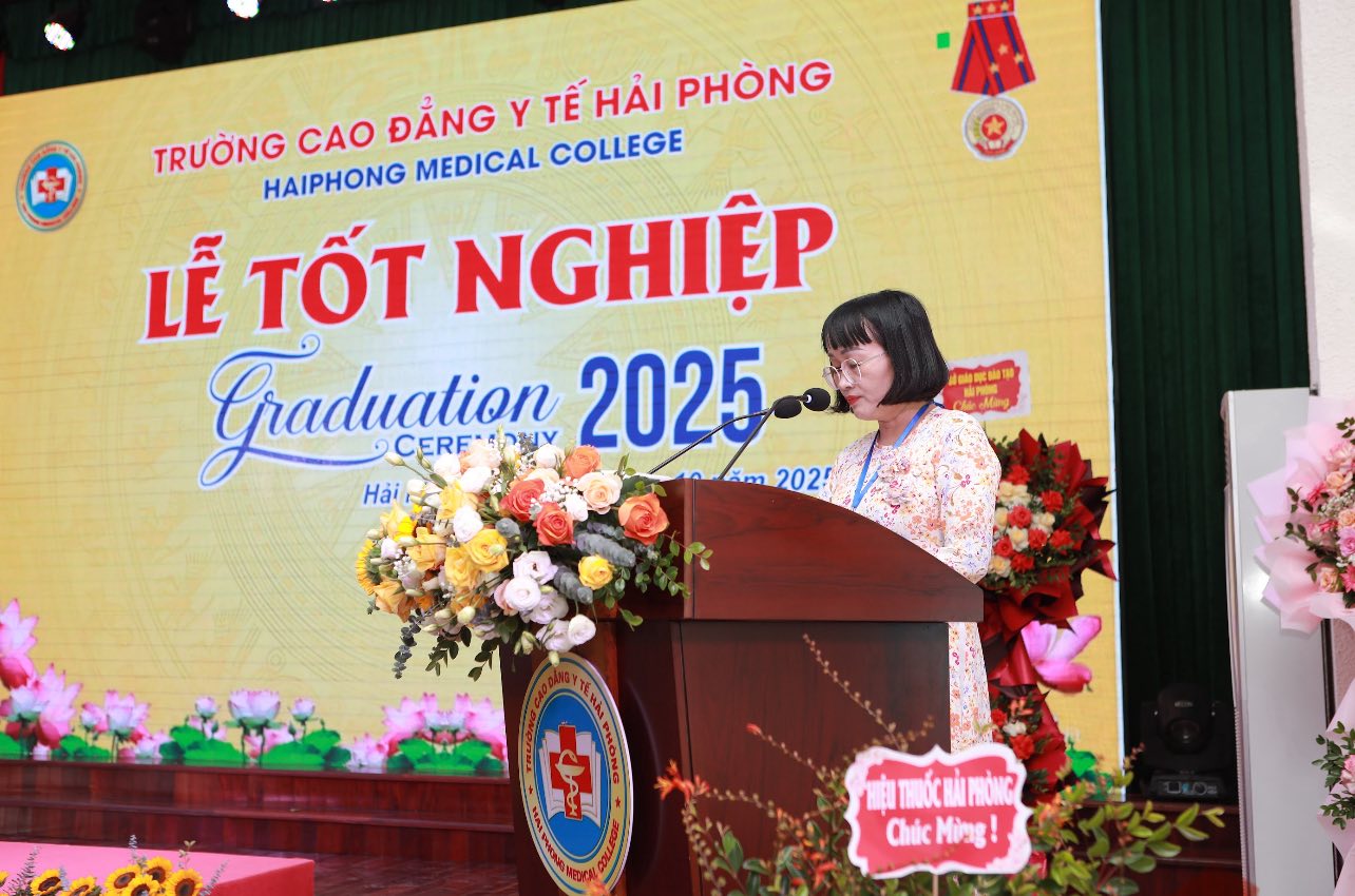 Tham dự buổi lễ có sự hiện diện của đại diện Sở Y tế, Sở Giáo dục- Đào tạo Hải Phòng; Ban Giám hiệu Nhà trường, các thầy cô giáo, các bậc phụ huynh cùng toàn thể tân cử nhân tốt nghiệp năm 2025.