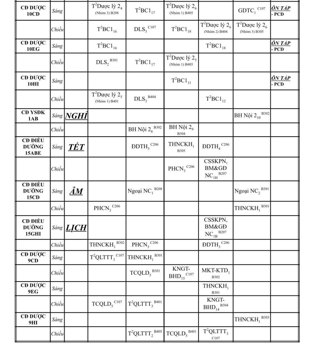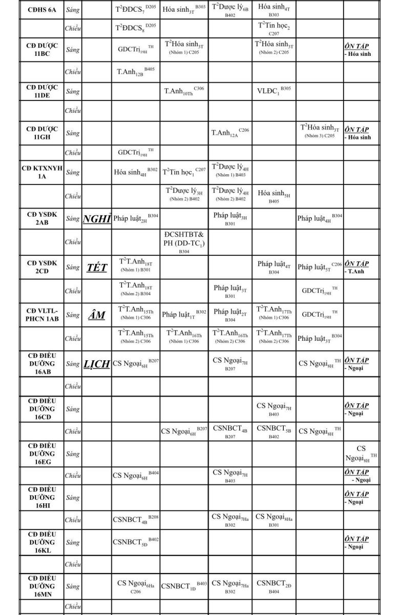 LỊCH HỌC LẠI Từ ngày: 11.08.2025 đến 17.08.2025