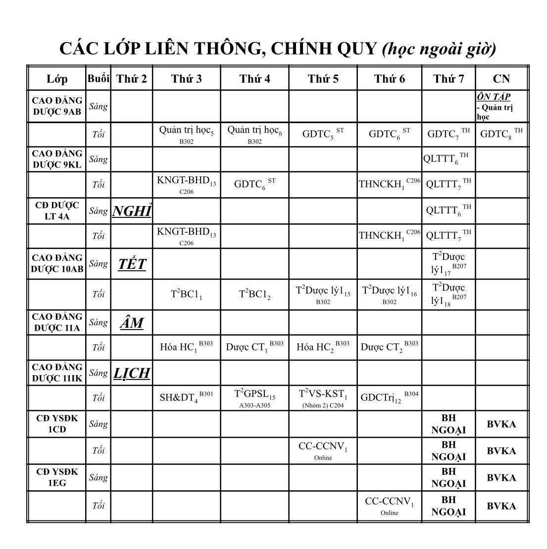 Thời khóa biểu